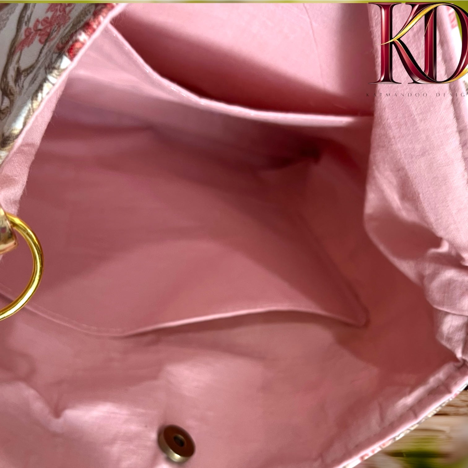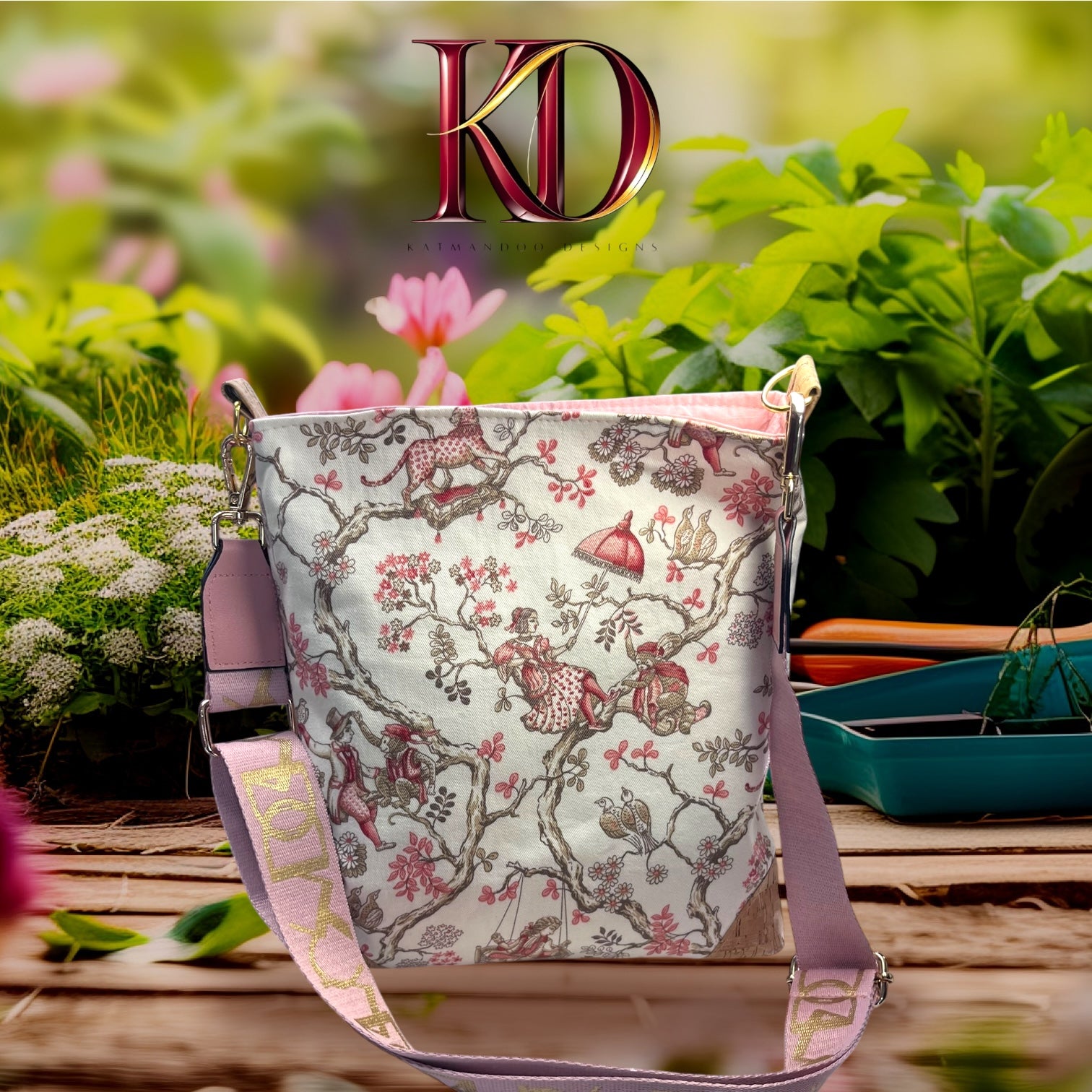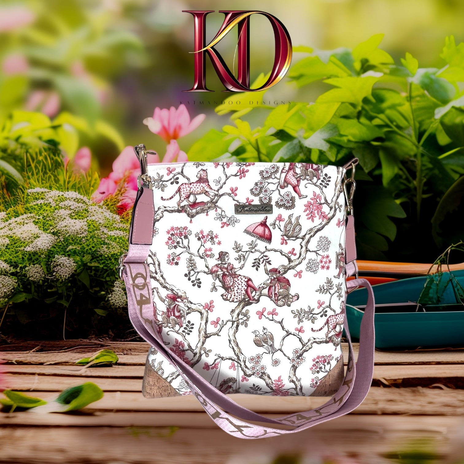 This handmade cotton and cork accent crossbody bag is a unique and charming accessory. Its intricate print, natural materials, and practical features make it both stylish and functional. The magnetic snap closure and interior zip pockets enhance its usability, while the handcrafted aesthetic adds a touch of individuality. The bag's design and size suggest it's perfect for someone who appreciates a blend of artistry and practicality in their everyday accessories